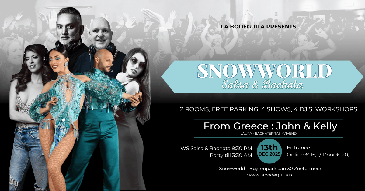 Join La Bodeguita at SnowWorld Zoetermeer for an evening of Salsa & Bachata, great shows, top DJs and beautiful energy all around. ππΊ