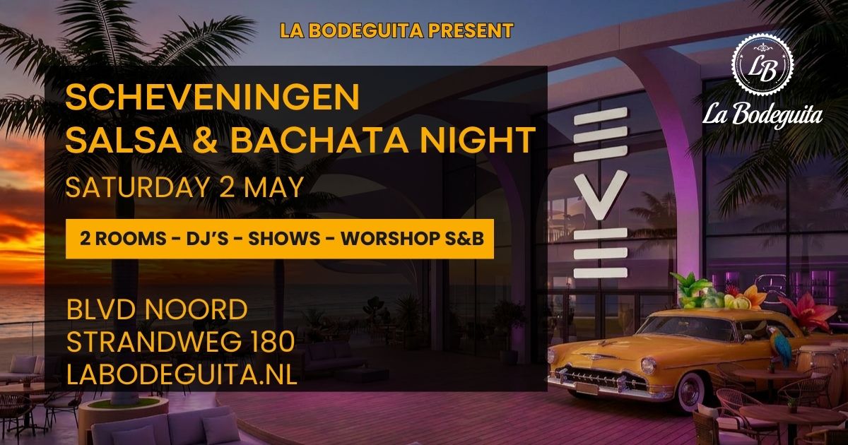 Join us for a special Latin night by the beach at EVE Scheveningen, a beautiful event location on the boulevard with a unique atmosphere and stunning sea views. Enjoy a full night of dancing, great music and amazing energy with two rooms, downstairs Salsa and upstairs Bachata. If the weather is nice, we will also dance outside by the beach. πŸ’ƒπŸ•Ί